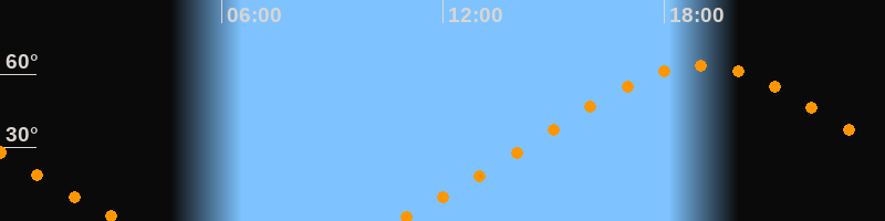 Höchster Stand (Kulmination)18:59 Uhr (h = 63,6°)