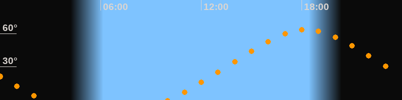 Höchster Stand (Kulmination)18:16 Uhr (h = 63,6°)