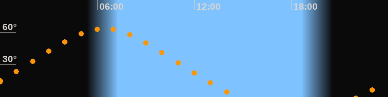 Höchster Stand (Kulmination)06:25 Uhr (h = 63,6°)
