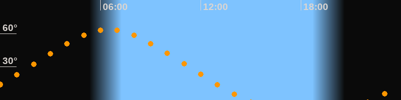 Höchster Stand (Kulmination)06:30 Uhr (h = 63,6°)
