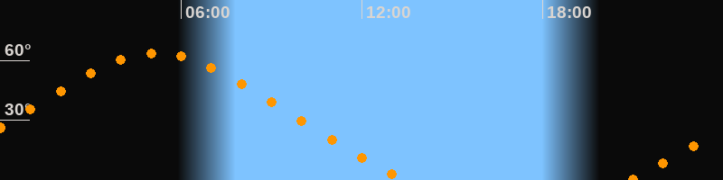 Höchster Stand (Kulmination)05:11 Uhr (h = 63,6°)