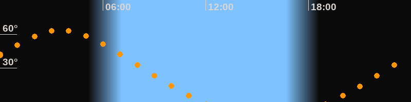 Aufgang19:10 Uhr im Nordosten (αAz = 48,4°)