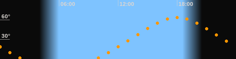 Höchster Stand (Kulmination)17:58 Uhr (h = 63,6°)