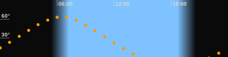 Höchster Stand (Kulmination)06:27 Uhr (h = 63,6°)