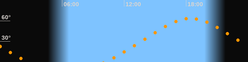 Höchster Stand (Kulmination)18:25 Uhr (h = 63,6°)
