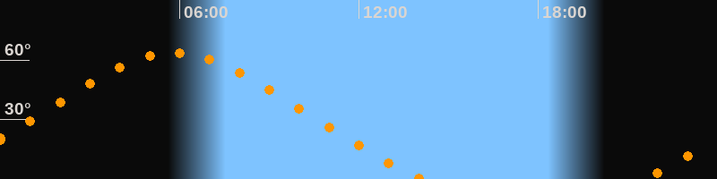 Höchster Stand (Kulmination)05:50 Uhr (h = 63,6°)