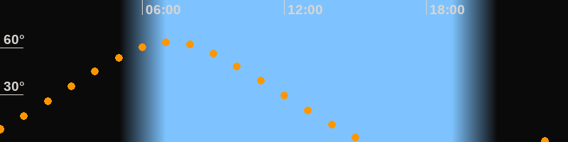 Höchster Stand (Kulmination)07:10 Uhr (h = 63,6°)