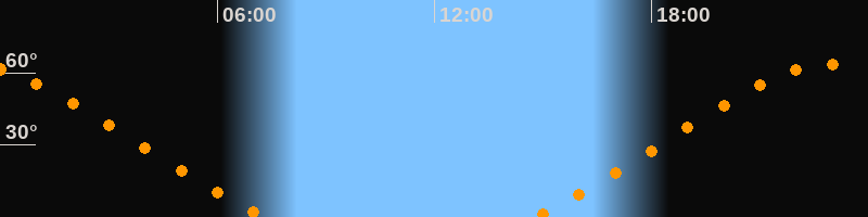 Höchster Stand (Kulmination)23:01 Uhr (h = 63,6°)