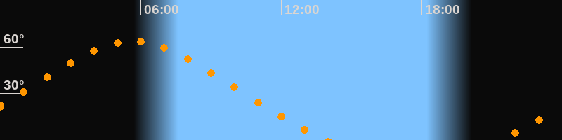 Höchster Stand (Kulmination)05:39 Uhr (h = 63,6°)