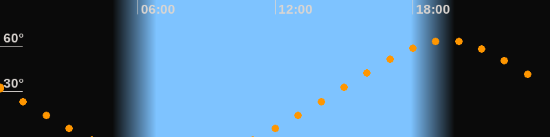 Höchster Stand (Kulmination)19:27 Uhr (h = 63,6°)