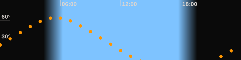 Höchster Stand (Kulmination)05:34 Uhr (h = 63,6°)
