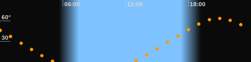 Höchster Stand (Kulmination)20:55 Uhr (h = 63,6°)