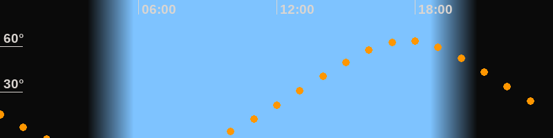 Höchster Stand (Kulmination)17:38 Uhr (h = 63,6°)