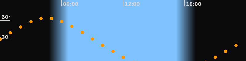 Aufgang20:10 Uhr im Nordosten (αAz = 48,4°)