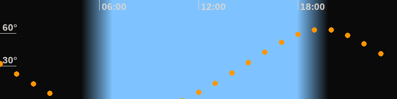 Höchster Stand (Kulmination)19:25 Uhr (h = 63,6°)