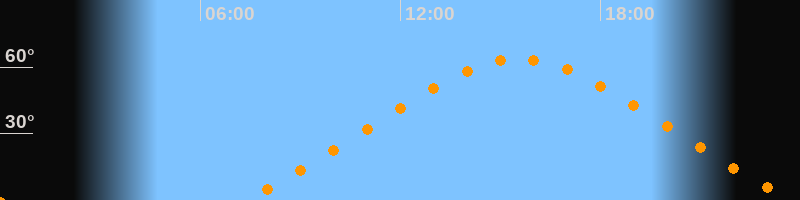 Höchster Stand (Kulmination)15:33 Uhr (h = 63,6°)