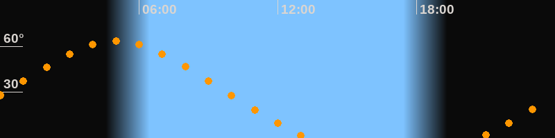 Höchster Stand (Kulmination)05:00 Uhr (h = 63,6°)
