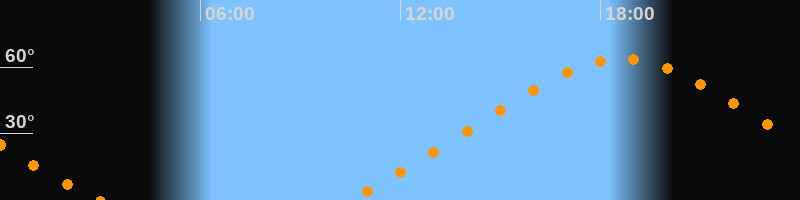 Höchster Stand (Kulmination)18:39 Uhr (h = 63,6°)