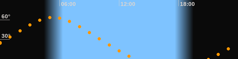 Höchster Stand (Kulmination)05:21 Uhr (h = 63,6°)