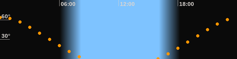 Höchster Stand (Kulmination)00:10 Uhr (h = 63,6°)