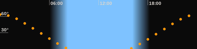 Höchster Stand (Kulmination)00:01 Uhr (h = 63,6°)