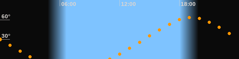 Höchster Stand (Kulmination)19:12 Uhr (h = 63,6°)
