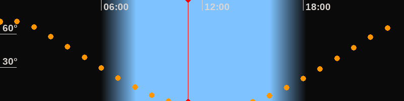Höchster Stand (Kulmination)00:30 Uhr (h = 71,8°)