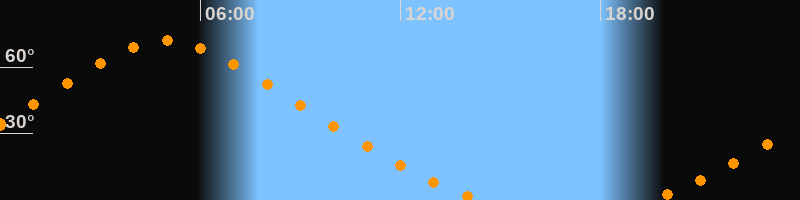 Aufgang19:23 Uhr im Nordosten (αAz = 30,4°)