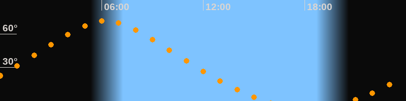 Höchster Stand (Kulmination)06:14 Uhr (h = 71,8°)