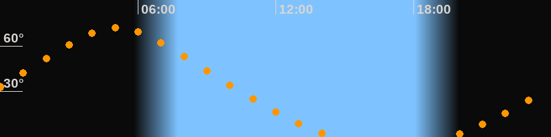 Aufgang19:29 Uhr im Nordosten (αAz = 30,4°)