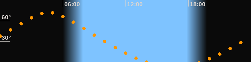 Höchster Stand (Kulmination)04:36 Uhr (h = 71,8°)