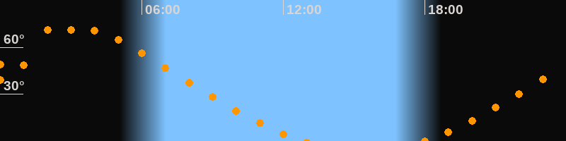 Höchster Stand (Kulmination)03:25 Uhr (h = 71,8°)
