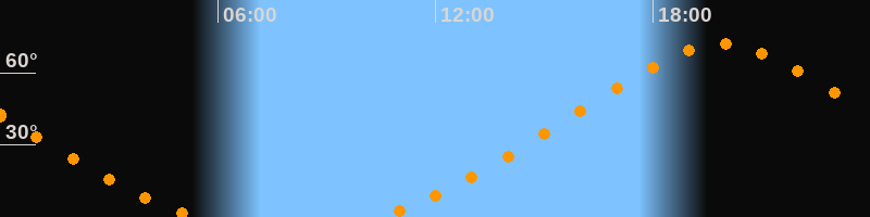 Höchster Stand (Kulmination)19:53 Uhr (h = 71,8°)