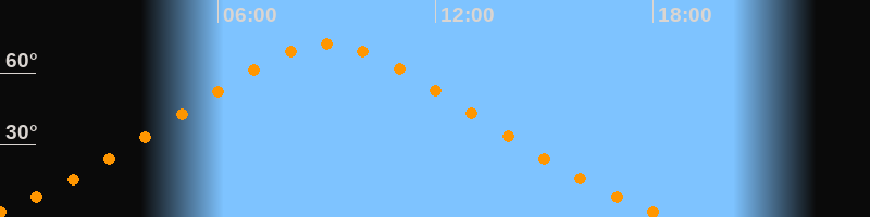 Höchster Stand (Kulmination)09:00 Uhr (h = 71,8°)