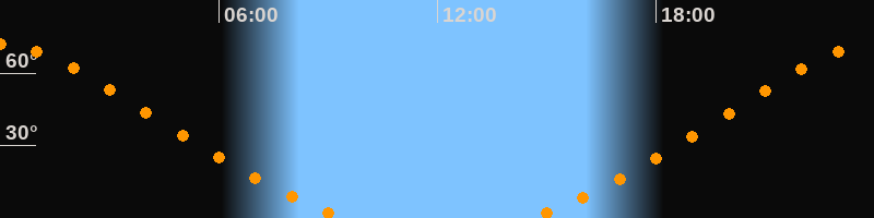Höchster Stand (Kulmination)23:59 Uhr (h = 71,8°)