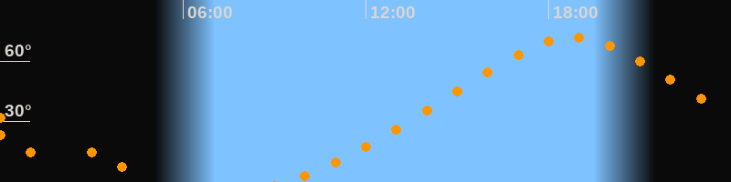 Höchster Stand (Kulmination)18:48 Uhr (h = 71,8°)