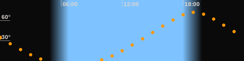 Höchster Stand (Kulmination)19:05 Uhr (h = 71,8°)