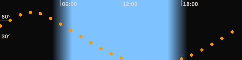 Höchster Stand (Kulmination)03:09 Uhr (h = 71,8°)