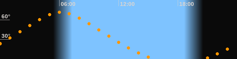 Höchster Stand (Kulmination)06:08 Uhr (h = 71,8°)