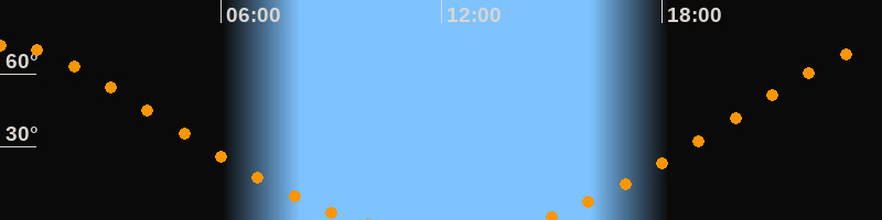 Höchster Stand (Kulmination)00:07 Uhr (h = 71,8°)