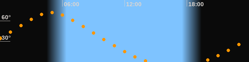 Aufgang19:20 Uhr im Nordosten (αAz = 30,4°)