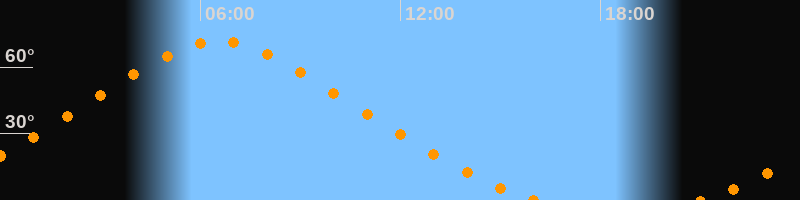 Höchster Stand (Kulmination)06:33 Uhr (h = 71,8°)