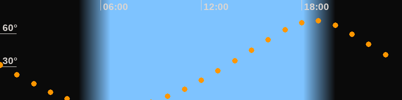 Höchster Stand (Kulmination)18:46 Uhr (h = 71,8°)