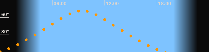 Höchster Stand (Kulmination)09:23 Uhr (h = 71,8°)