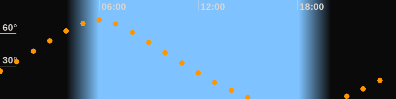 Höchster Stand (Kulmination)05:56 Uhr (h = 71,8°)