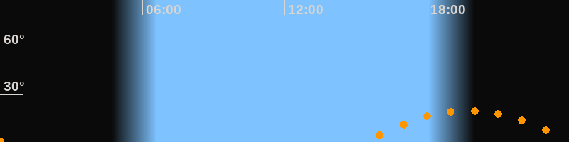 Aufgang15:19 Uhr im Südosten (αAz = 120,6°)