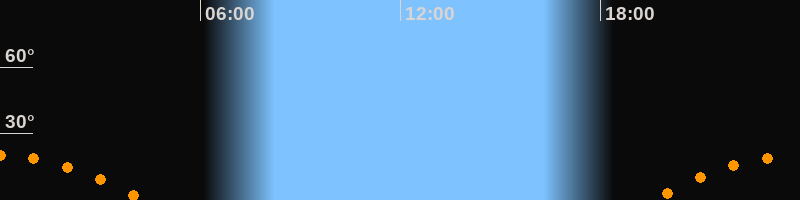 Aufgang19:31 Uhr im Südosten (αAz = 120,6°)