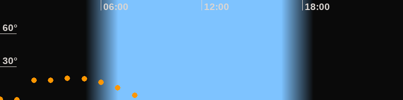 Aufgang23:49 Uhr im Südosten (αAz = 120,6°)