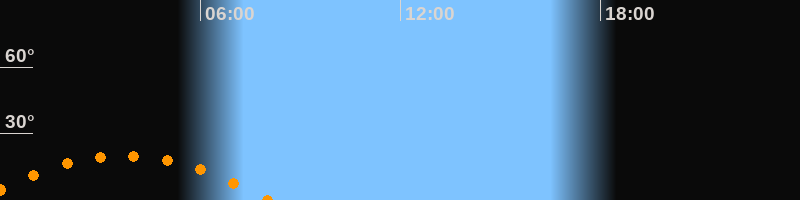 Aufgang23:16 Uhr im Südosten (αAz = 120,6°)