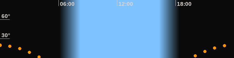 Aufgang19:28 Uhr im Südosten (αAz = 120,6°)